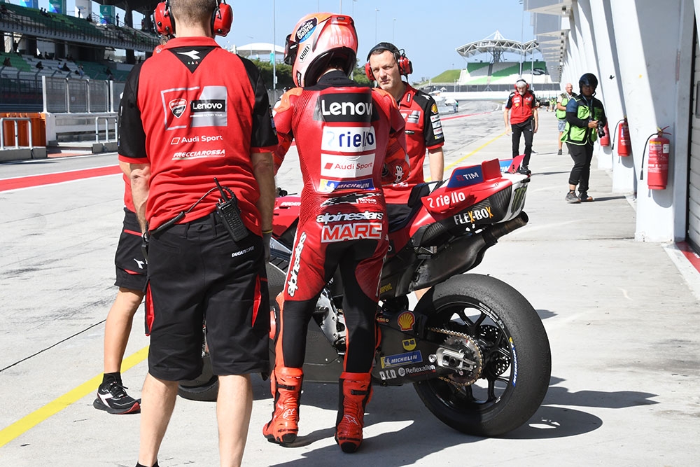 🔴 In pista per il secondo run Marc Marquez e Francesco Bagnaia