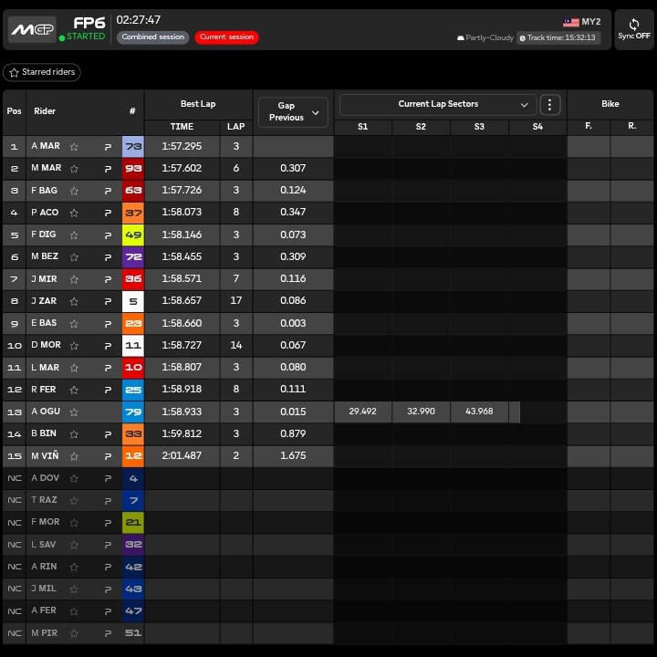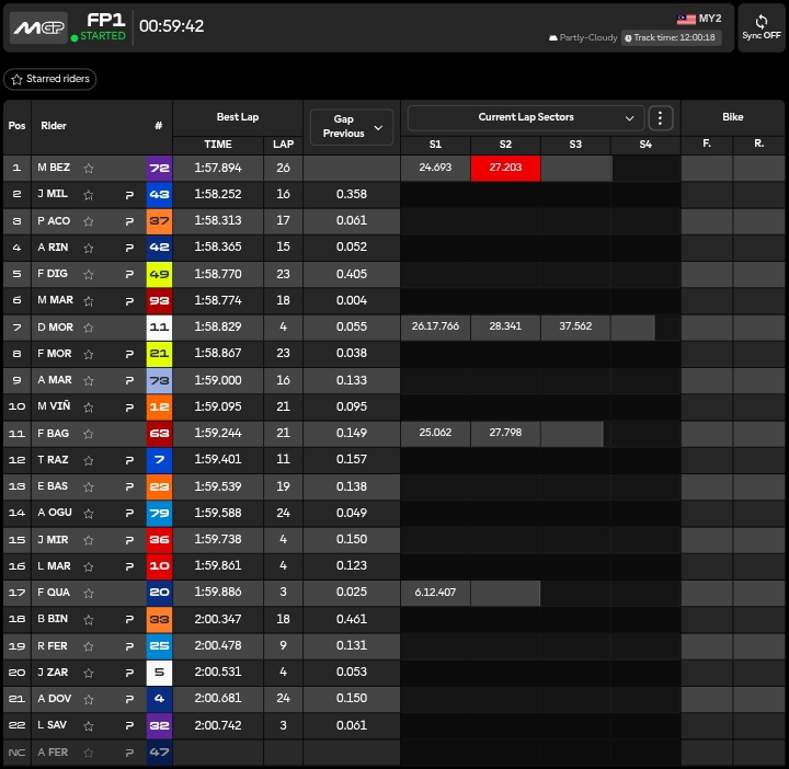 🔴 03.27 MARCO BEZZECCHI!!!!! Tempo di 1.57.026 consolida la prima posizione.