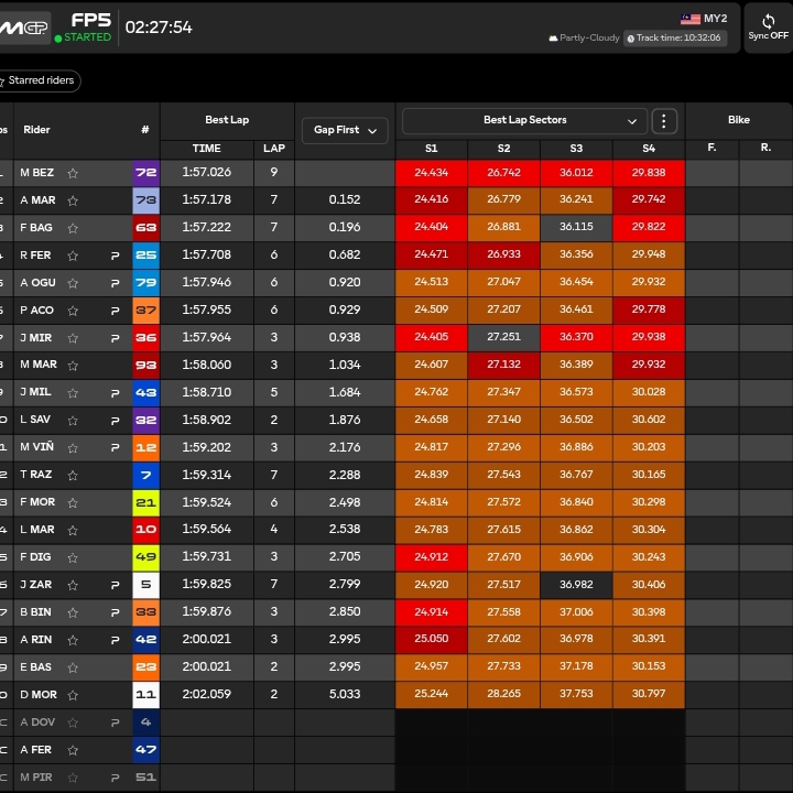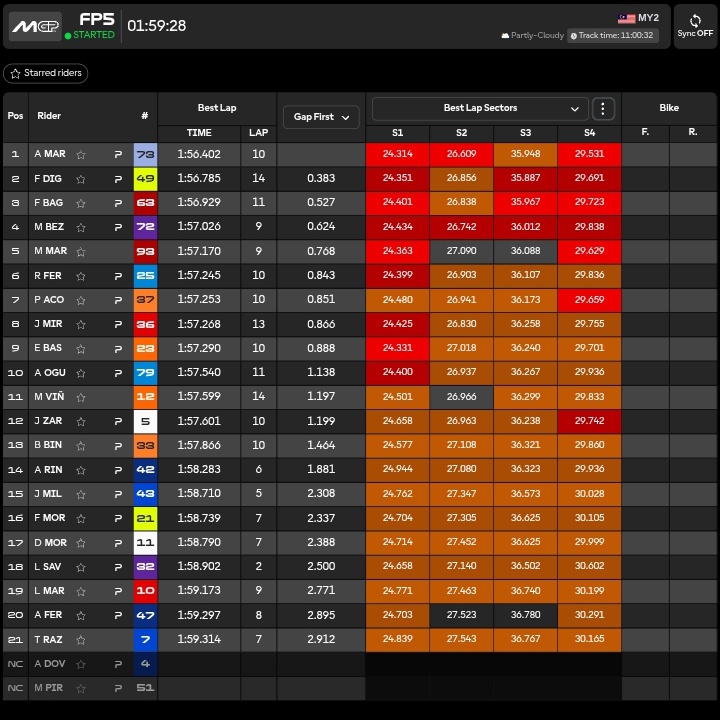 🔴 Run molto veloce di Maverick Vinales che scala la classifica portandosi in TOP10 col tempo di 1.59.095