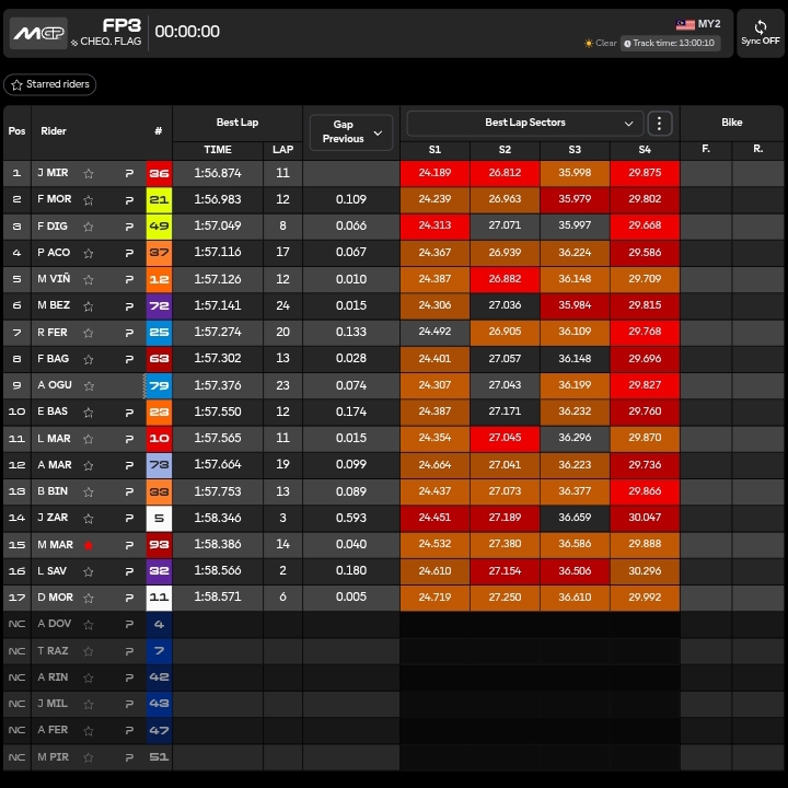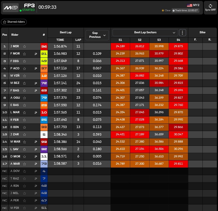 🔴03.52 JOAAANNNN MIR!!!!!! Al giro 11 del terzo run sigla 1.56.874!!!! Il primo a scende sotto al muro del 56 a Sepang quest’oggi e l’unico nella storia insieme ad Alex Marquez, Francesco Bagnaia, Fabio Quartararo e Franco Morbidelli (test 2025) a farlo!!!