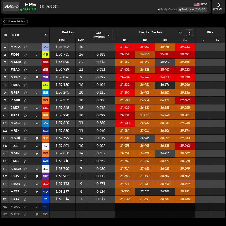🔴 03.24 RAUL FERNANDEZ in 1.57.708!!!! E continua ad abbassare, primi due settori sono rossi.