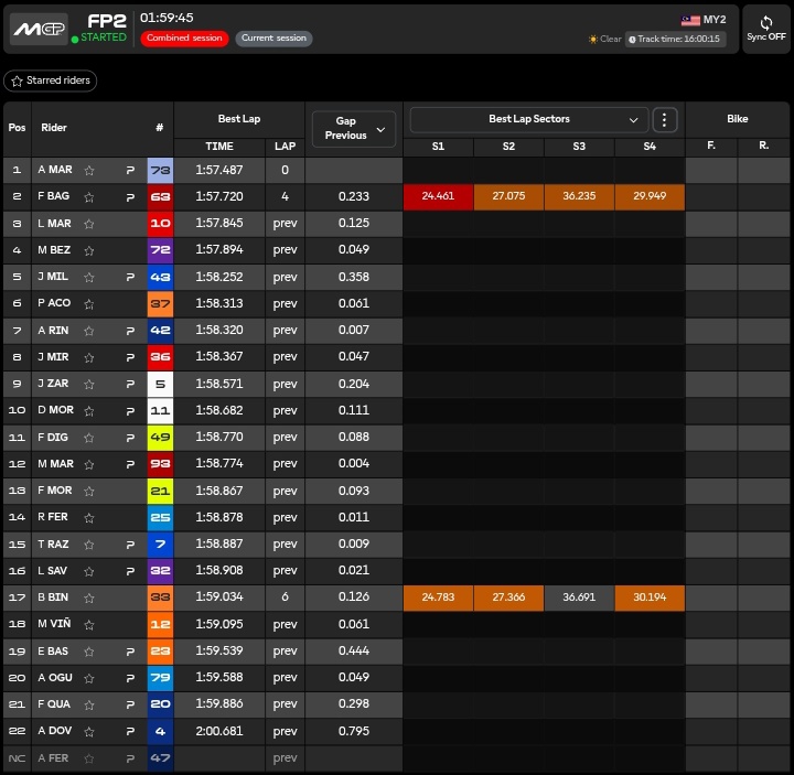 La stagione MotoGP è appena iniziata. Dopo lo Shakedown dei giorni scorsi si inizia a fare sul serio al Sepang International Circuit. Tutti presenti tranne Jorge Martin e Fermin Aldeguer fermi per infortunio.